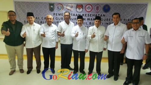 ini, Jumat (12/1/2018), empat paangan calon Gubernur Riau (Gubri) dan Wakil Gubernur Riau (Wagubri) melaksanakan pemeriksaan kesehatan di RSUD Arifin Achmad, Kota Pekanbaru, Riau. Saat pemeriksaan kesehatan ada yang beda dari keempat calon pemimpin Bumi Lancang Kuning.