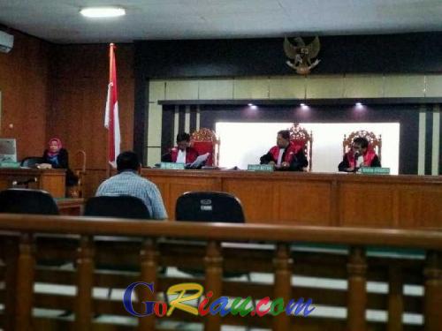 Wan Amir Firdaus dalam sidang vonis di Pengadilan Negeri Pekanbaru, Rabu malam (Foto: Chairul Hadi)