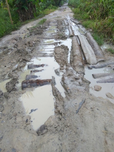melewati jalan yang layaknya kubangan sapi tersebut, apalagi jika musim